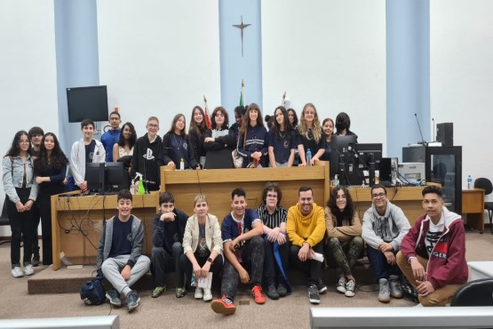 “Buscamos discussões éticas, morais e legais, onde os alunos vão interpretar os personagens que compõem um júri e terão que criar suas argumentações para o caso. É uma forma dinâmica e uma metodologia ativa para vermos o processo de ensino-aprendizagem dos nossos alunos”, complementa Rapczynski. A professora de Língua Portuguesa da turma, Cleide Trapp, também acompanhou a visita.