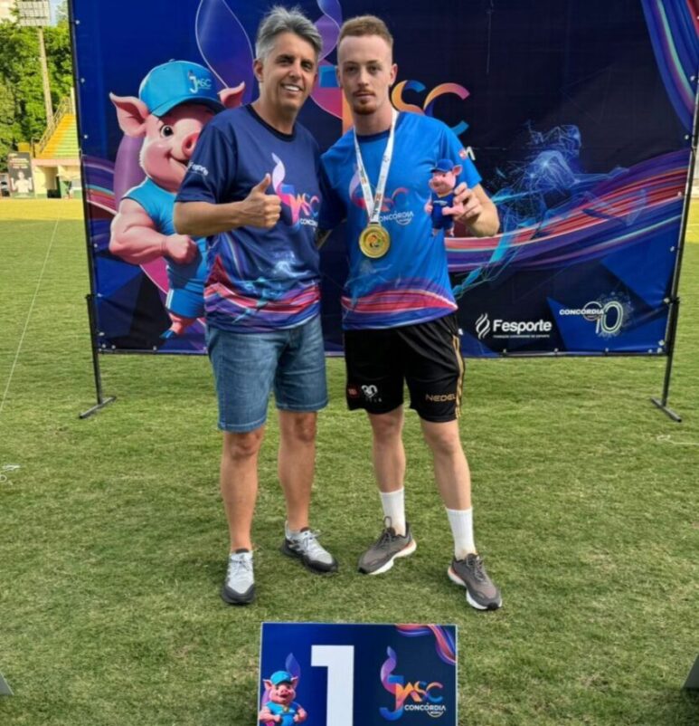 O prefeito Rogério Luciano Pacheco prestigiou a conquista do atleta, que contribui para o desempenho da delegação de Concórdia nos JASC. As competições de atletismo seguem até o domingo, dia 17, no estádio municipal.