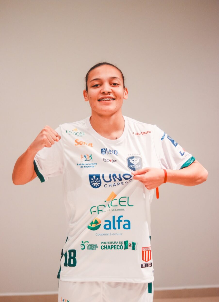 Natural de São Miguel do Oeste, onde era atleta da escolinha Gol de Bico, Ariane chegou à PMC/Female/Uno no início deste ano. No Corujão, ela já entrou em quadra e balançou as redes em competições como a Copa Mundo do Futsal e a Liga Feminina de Futsal. Aliás, Ariane estava a caminho de outra disputa quando recebeu a notícia da convocação. “Eu estava indo para os Jogos Abertos e vi uma menção nos stories, no Instagram. Estranhei na hora pois não sabia do que se tratava. Quando entendi, fiquei desacreditada, e a minha primeira reação foi chorar de emoção”, conta a ala.
