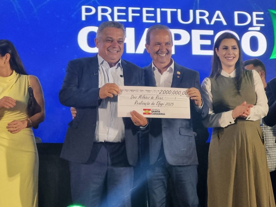 Também assinou o termo de R$ 20 milhões para o Autódromo Internacional em Chapecó, que já teve R$ 36 milhões da Prefeitura na primeira etapa. Outro repasse anunciado foi de R$ 30 milhões para o prolongamento Norte da Avenida Getúlio Vargas. Ele também anunciou uma nova escola estadual no bairro Efapi.