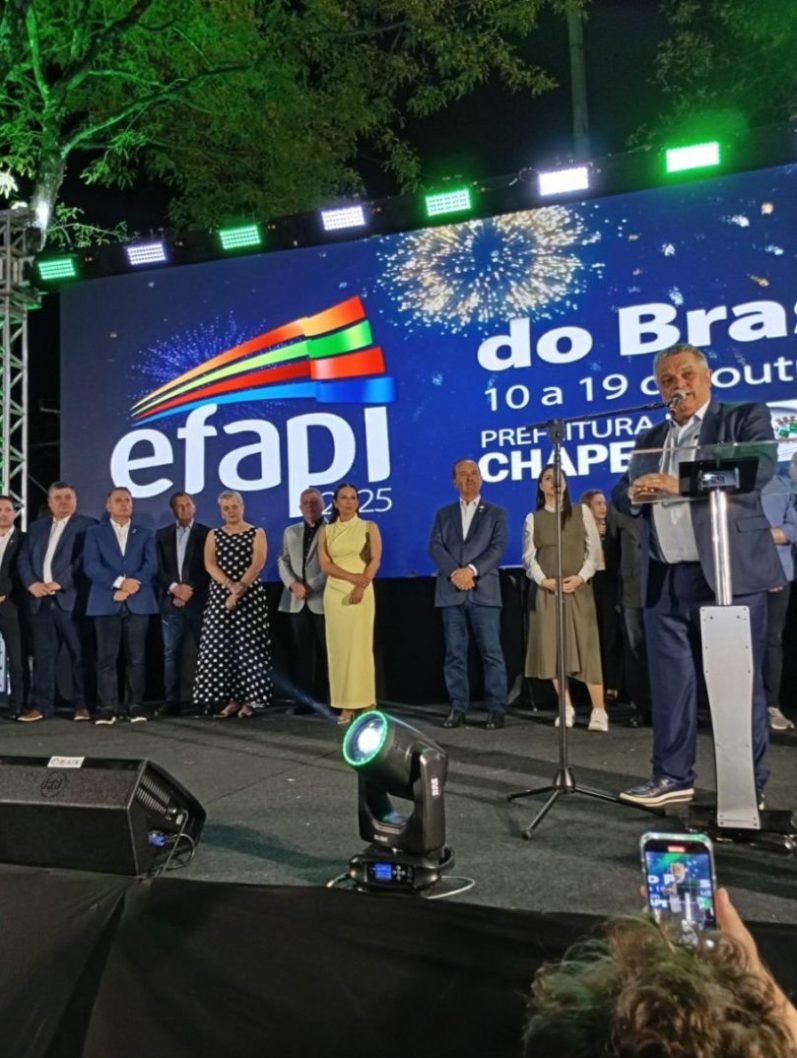 O prefeito de Chapecó, João Rodrigues, lembrou dos pioneiros que criaram a Efapi, entre eles Valmor Lunardi, que dá nome ao Parque de Exposições. “Nunca deixem de sonhar e empreender. Este parque foi sonhado pelos pioneiros. Eles e muitos que nos sucederam ajudaram a transformar essa cidade na capital do turismo de negócios. Tivemos um crescimento de 130% no turismo no último ano. Somos o maior polo mundial da indústria da transformação. Mesmo com dificuldades em logística, como da BR-282, exportamos para o mundo. Aqui geramos emprego que atraem migrantes e imigrantes. O Salão imobiliário da Efapi mostra o quanto o empresário acredita em Chapecó. Aos visitantes, bem-vindos à maior expofeira deste país, aqui na cidade de Chapecó”, disse Rodrigues.