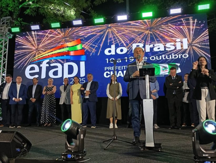 Autoridades locais, estaduais e nacionais prestigiaram a abertura da Efapi do Brasil, realizada nesta sexta-feira (10), no Parque de Exposições Dr. Valmor Ernesto Lunardi, em Chapecó.