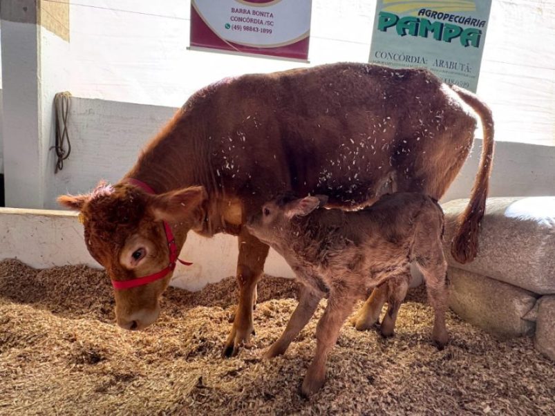 O nascimento do bezerro é mais uma das atrações do setor agropecuário da Efapi do Brasil 2025 e reúne criadores e expositores de todo o Sul do país. Ao todo, irão passar pela 22ª edição da feira multissetorial, mais de 400 animais de grande porte.