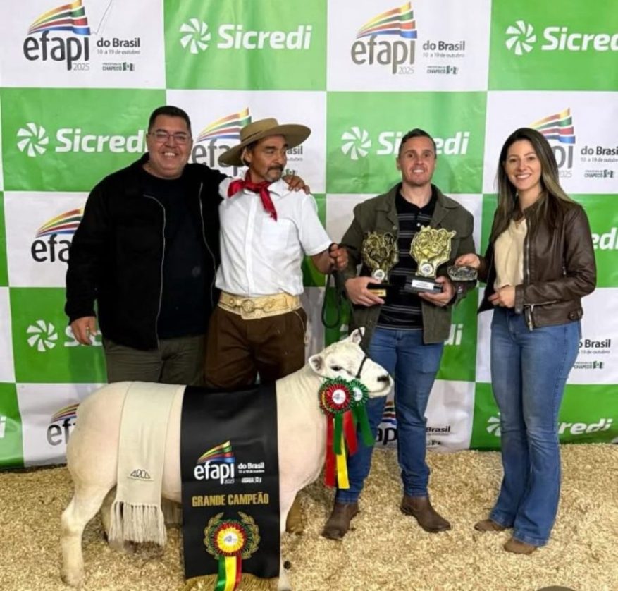 A tradição e a genética de excelência mais uma vez colocaram o nome da Cabanha Diamantina, de Irani, entre os grandes destaques da EFAPI do Brasil 2025, em Chapecó. A propriedade conquistou o título de Grande Campeão com o animal Diamantina 1169 e o de Reservado de Grande Campeão com o exemplar Diamantina 1143, além da quarta melhor fêmea da mostra, reafirmando sua liderança nacional no melhoramento genético de ovinos da raça Texel.