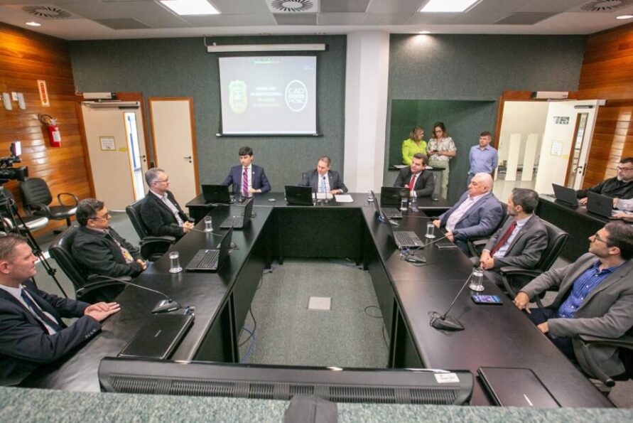 O delegado-geral da Polícia Civil de Santa Catarina, Ulisses Gabriel, juntamente com coordenador do Centro de Apoio Operacional de Combate aos Crimes Contra o Agronegócio (CAOAGRO/PCSC), delegado Fernando Callfass, participaram de reunião sobre a “Segurança dos Produtores Rurais Catarinenses” realizada pela Comissão de Agricultura da Assembléia Legislativa de Santa Catarina (Alesc), presidida pelo deputado Altair Silva, nesta terça (27).