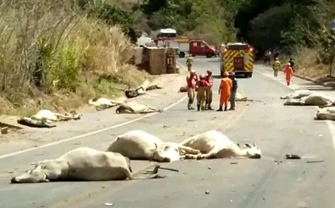 Quando o motorista da carreta percebeu a presença dos animais, ele tentou evitar a batida, mas não conseguiu desviar de todos os bois, matando 21 deles e capotando.