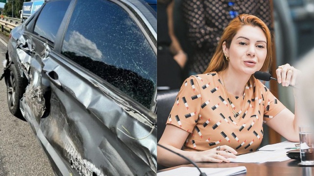 A parlamentar, grávida de dois meses do segundo filho, agradeceu a Deus e disse que um caminhão prensou o carro onde estava contra uma guard-rail, no trecho que passa por Imbituba.