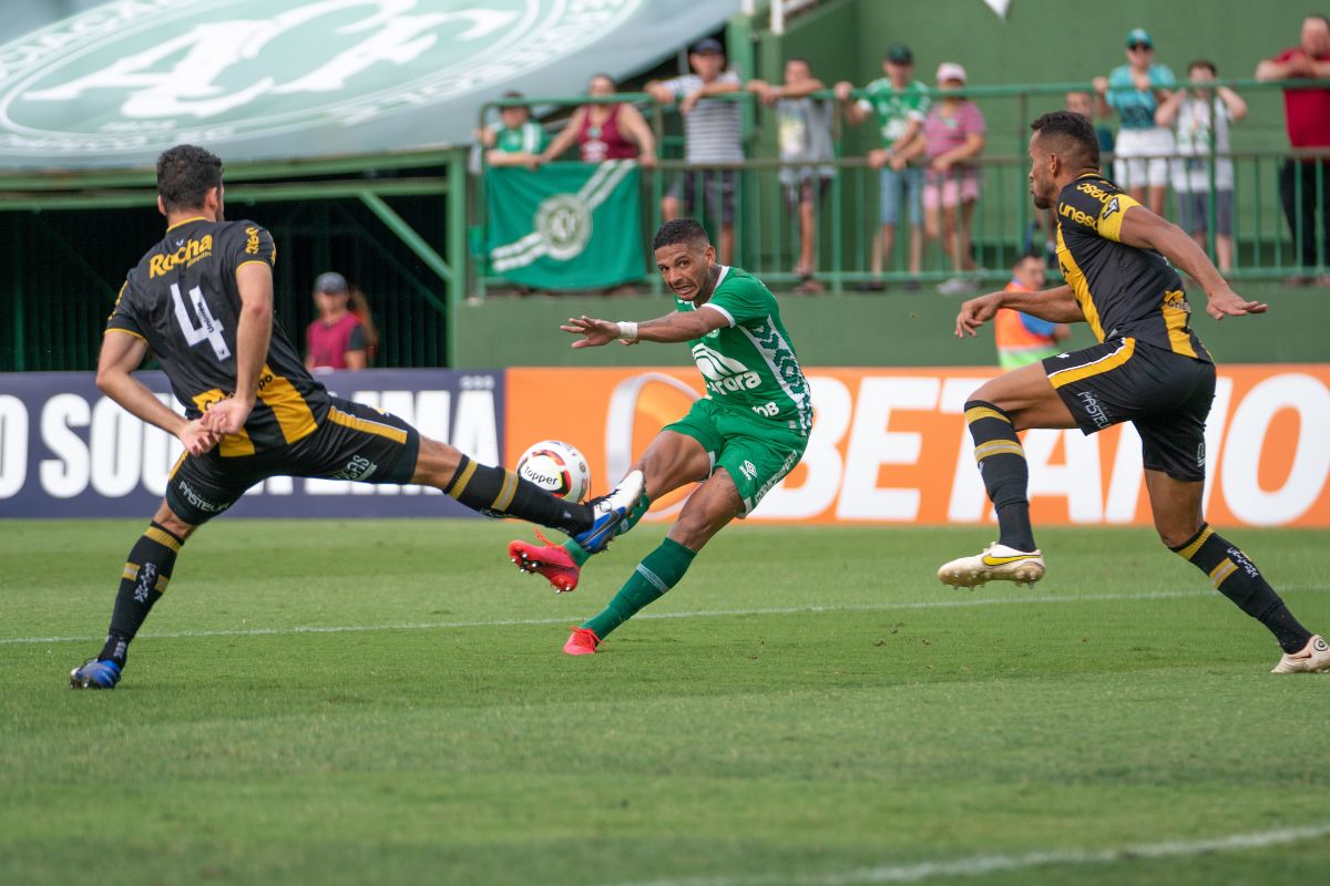 A Chapecoense começou o duelo cadenciando as jogadas da equipe adversária, que manteve uma postura defensiva durante os minutos iniciais de jogo. A primeira chegada alviverde surgiu aos 15 minutos da primeira etapa, quando Bruno Nazário cobrou escanteio e a bola sobrou para Kevin na intermediária de ataque. Buscando surpreender o goleiro, o lateral chutou de primeira, fazendo a bola passar muito próxima à trave.
