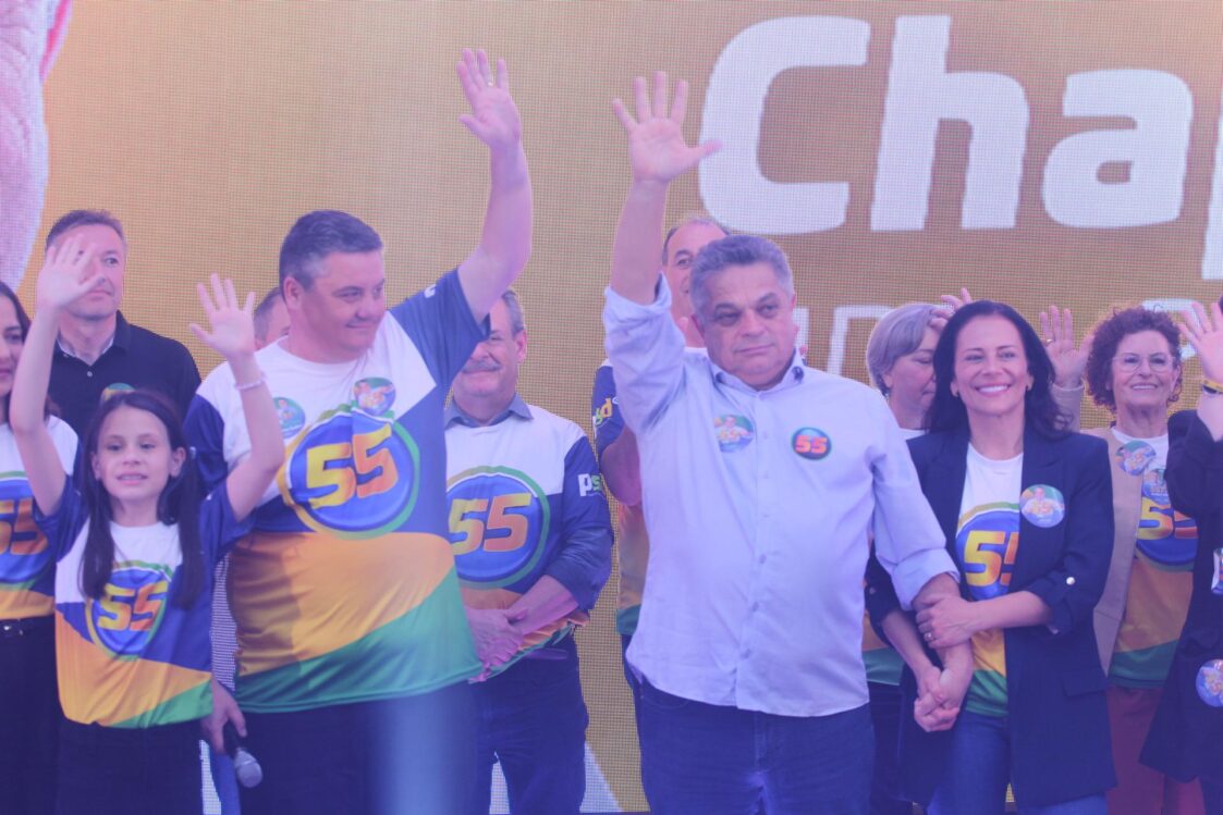 Na quinta-feira (22), no Complexo de Eventos Tabajara, em Chapecó, cerca de três mil pessoas participaram do lançamento da candidatura à reeleição do prefeito João Rodrigues (PSD) e da candidatura à vice-prefeito de Valmor Scolari, pela coligação Chapecó Acima de Tudo. Participaram do momento, deputados estaduais, prefeitos, vereadores, presidentes de partido, apoiadores e todos os candidatos a vereador e vereadora dos sete partidos da coligação: PSD, Progressistas, União Brasil, Republicanos, Podemos, PDT e MDB.