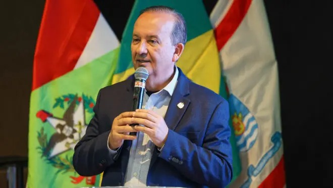 O procurador-geral do Estado, Marcelo Mendes, esteve presente na solenidade ao lado do governador do Estado, Jorginho Mello, da vice-governadora, Marilisa Boehm, da secretária de Articulação Nacional, Vânia Franco, e dos senadores Esperidião Amin (PP), Ivete da Silveira (MDB) e Jorge Seif (PL).