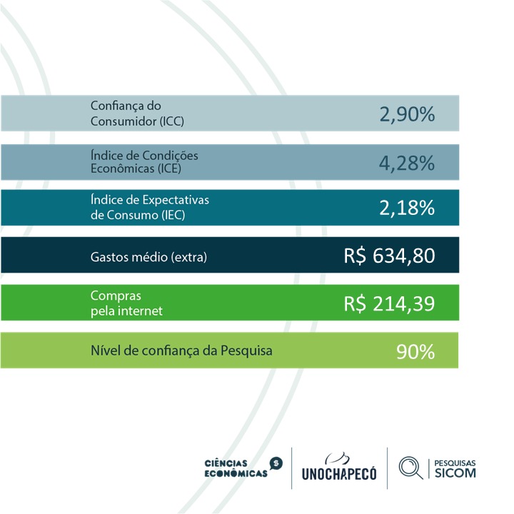 Com diferença de 2,9% em comparação ao mês de abril e aumento para 90,18 pontos, maio registra elevação no Índice de Confiança do Consumidor (ICC) em Chapecó. Isso é o que mostra pesquisa realizada de 18 de abril a 10 de maio, com 200 participantes, em atividade conjunta do curso de Ciências Econômicas da Unochapecó e Sindicato do Comércio da Região de Chapecó (Sicom).