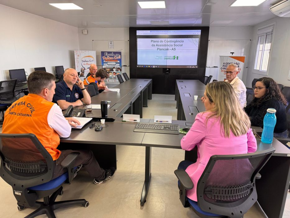 A Prefeitura de Chapecó, por meio da Defesa Civil Municipal, elaborou um Plano de Contingência, que na tarde de quinta-feira (25) foi apresentado na Secretaria da Família e Proteção Social. Estiveram presentes o secretário da pasta, Luciano Hüning, o 1º Sargento BM Vilson Antônio Zamboni, representante da Defesa Civil do Estado de Santa Catarina, e Walter Parizotto, diretor da Defesa Civil de Chapecó.