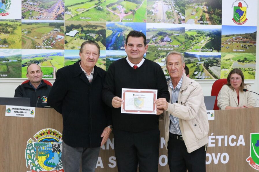A “Moção de Congratulação” foi proposta pelos vereadores Armindo Andreis e Tiago Luís Viera, sendo aprovada por unanimidade.