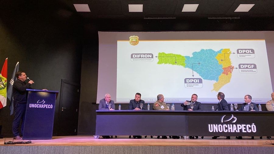 Durante o painel, o Delegado Regional de Chapecó Ricardo Newton Casagrande apresentou os trabalhos realizados pela 12 Delegacia Regional de Chapecó, a área de circunscrição das unidades policiais bem como as estatísticas das unidades policiais pertencentes a respectiva delegacia regional.