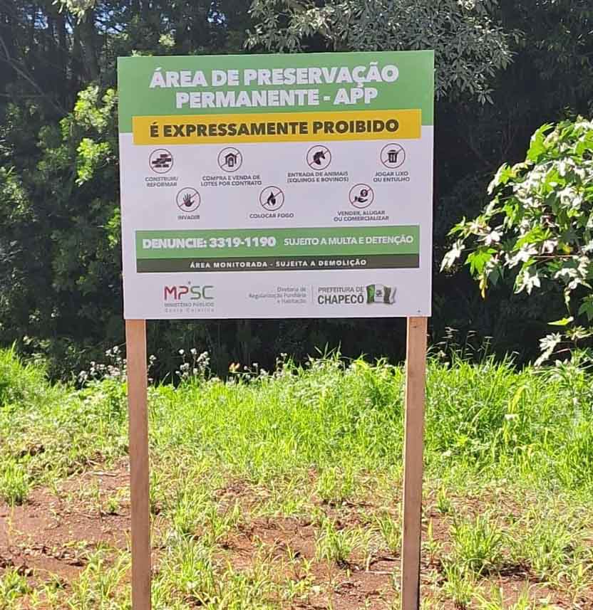 A Diretoria de Regularização Fundiária e Habitação de Chapecó iniciou neste mês uma grande mobilização para inibir o parcelamento irregular e as invasões em Áreas de Preservação Permanente (APPs), e/ou áreas institucionais.