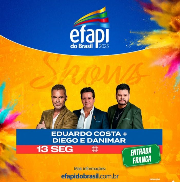 Nesta segunda a festa também está garantida no Palco Principal com a apresentação de Eduardo Costa e da dupla Diego e Danimar, com início previsto a partir das 22h, com entrada gratuita. No Espaço Bier, a programação artística inicia às 18h15 com Jorge Douglas, às 19h15 com Airton Valadares, às 20h15 com Neri de Lara – Braseiro 50 anos, às 21h15 Banda GDO e segue até às 22h15 com Mauro José Kluch, às 23h15 com Cantiga de Verso e Alma e às 00h15 com a dupla Junior e Patrick.