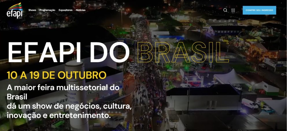 Está no ar o site da Efapi do Brasil, que será realizada de 10 a 19 de outubro de 2025, no Parque de Exposições Dr. Valmor Ernesto Lunardi, em Chapecó. No link www.efapidobrasil.com.br é possível conferir a programação de shows, comprar ingresso, ver os expositores e ficar por dentro das notícias e os números da Exposição Feira Agropecuária, Comercial e Industrial de Chapecó.