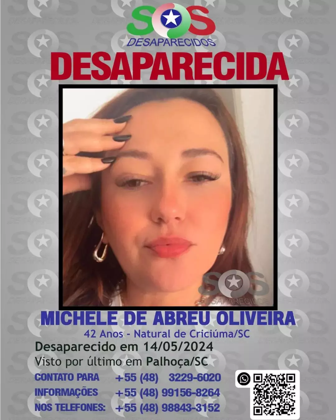 Foi encontrado o corpo de uma mulher que estava desaparecida, em Palhoça (SC), na noite de quarta (22). A vítima identificada como Michele Abreu de Oliveira, de 42 anos, estava desaparecida a pouco mais de uma semana e foi encontrado dentro da casa da família, na Praia de Fora. As informações são do portal SCC10.