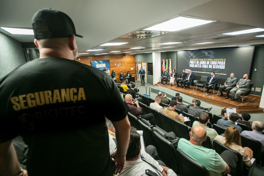 Além de vigilantes e instrutores, autoridades e defensores do uso de armas participaram da audiência. O vereador Instrutor Lucas (PL), de Joinville, afirmou que o armamento fora do serviço é uma questão de necessidade e sobrevivência para os vigilantes. Willian Tonezi (PL), também vereador em Joinville, defendeu a aprovação do projeto. “A categoria tem que se engajar nessa luta, fazer pressão”, disse.
