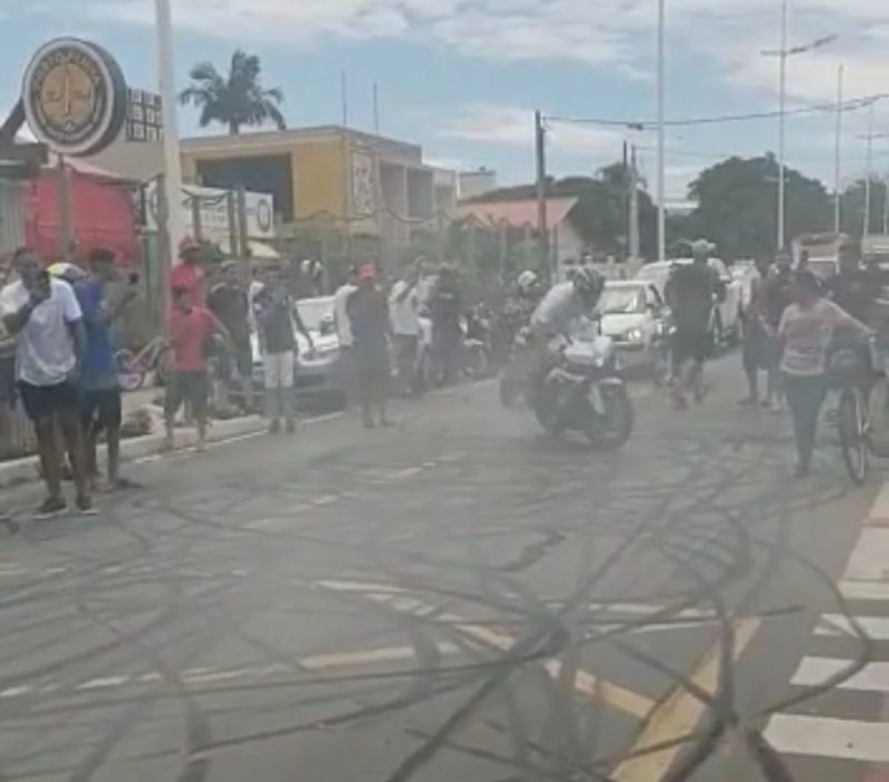 Vídeos feitos por moradores mostram a situação na cidade na manhã desta sexta-feira. Em um dos vídeos centenas de pessoas gritam enquanto motociclistas fazem “zerinho” com a moto no meio da rua. Já em outro o carro da Polícia Militar aparece nas imagens, mesmo assim os homens gritam e se aglomeram.