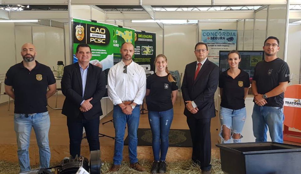 A Polícia Civil dispõe no evento de espaço em que apresenta o Caoagro/PCSC para as entidades e produtores rurais da região e também expõe os avanços do projeto “Concórdia mais Segura”, demonstrando como a integração entre a tecnologia e a investigação pode ajudar na resolução dos crimes em áreas rurais e contra o agronegócio, conforme o diretor de Polícia da Fronteira e coordenador estadual do (Caoagro/PCSC), Delegado de Policia Fernando Callfass, que participou da abertura com os delegados de policia de Concórdia, Álvaro Optiz e Rogério Taques.