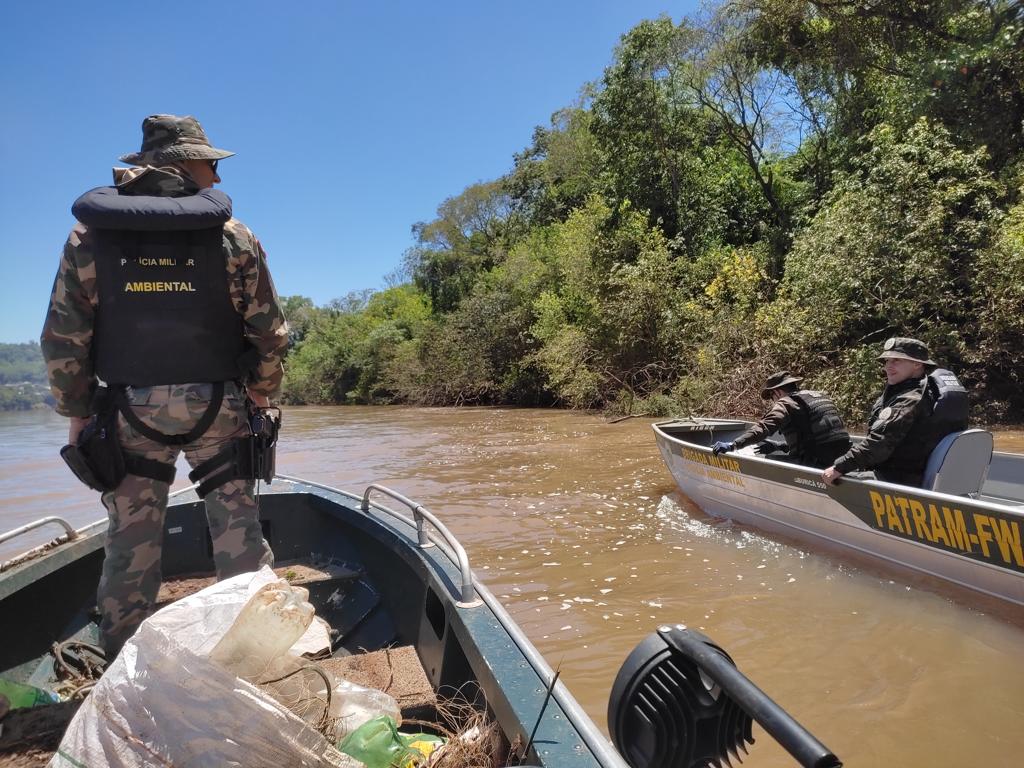 Nesta sexta (4), policiais militares do 2º Batalhão de Polícia Militar Ambiental (2ºBPMA), juntamente com policiais da Brigada Militar Ambiental (RS), fiscalizaram no total uma área de 90km de extensão do Rio Uruguai, buscando prevenir e fiscalizar o cumprimento da legislação nesse período de piracema.