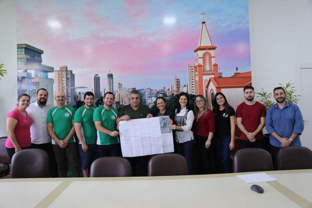 O projeto da nova sede da Associação de Surdos de Chapecó, que terá ginásio esportivo, cinco salas para atividades, banheiros e churrasqueira, tudo com acessibilidade, foi apresentado nesta quarta (24), na sala de reuniões da Prefeitura. Estiveram presentes o prefeito, João Rodrigues, a primeira dama, Fabiana Matte Rodrigues, o secretário de Desenvolvimento Sustentável e Obras Estruturantes, Maurício Lise da Rocha, e a diretoria da Associação de Surdos de Chapecó.