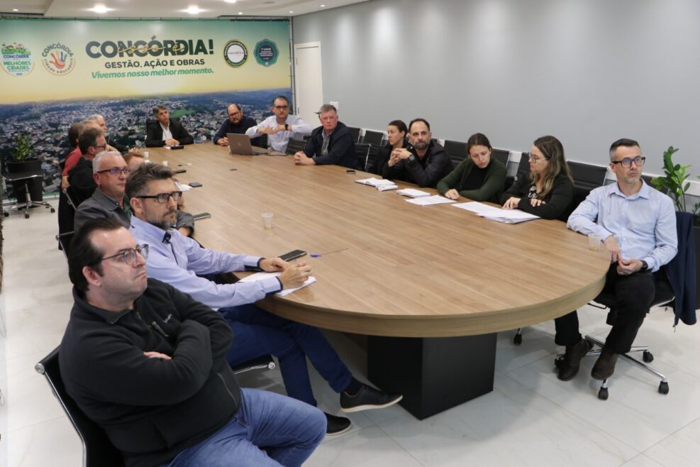 O prefeito de Concórdia (SC), Rogério Luciano Pacheco, juntamente com o líder do governo na Câmara, Wagner Simioni e o Líder da Bancada, Fabiano Caitano, convidaram entidades representativas do município para uma reunião de trabalho nesta quinta (20), para esclarecer dúvidas sobre a duplicação da avenida Tancredo Neves. ACIC, CDL, FIESC, Setcom, Sinduscon, Sindilojas, equipe técnica da prefeitura e empresa Britax, executora da obra estiveram presentes.