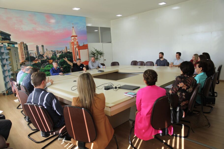 Comerciantes e integrantes das diretorias da Câmara de Dirigentes Lojistas (CDL) e do Sindicato do Comércio da Região de Chapecó (Sicom) estiveram na tarde desta quarta (3), na sala de reuniões da Prefeitura, com o prefeito João Rodrigues e o secretário de Governo, Thiago Felipe Etges, solicitando uma solução para o estacionamento rotativo de Chapecó.