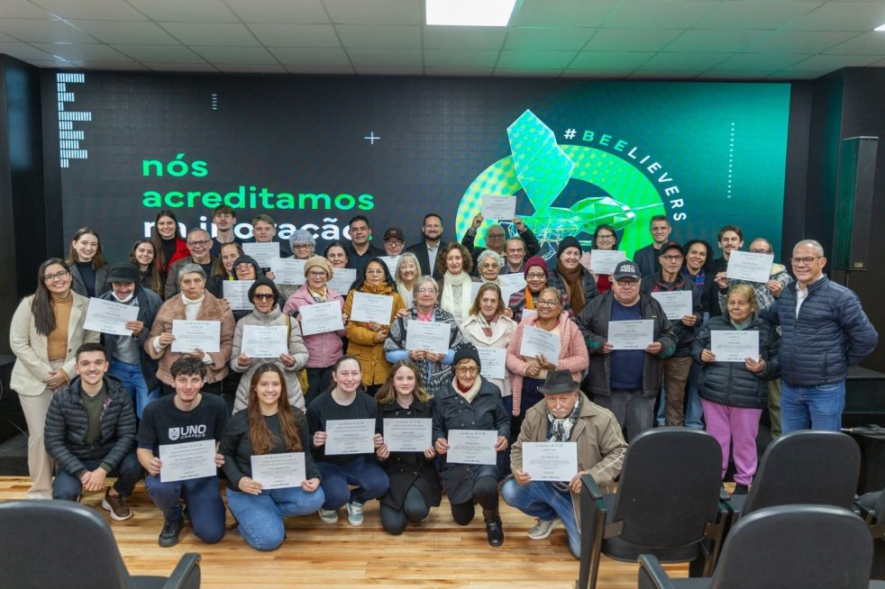 Por meio da cidade do idoso, são ofertados cursos no Pollen Parque Científico e Tecnológico, onde alunos dos cursos de tecnologia da Unochapecó foram voluntários para auxiliar os idosos a usarem melhor o aparelho, sob a supervisão de professores. Eles aprenderam a usar melhor a calculadora, QR Code, despertador, redes sociais e a tomar cuidado com golpes. A primeira turma, com cerca de 70 alunos, teve a formatura e entrega de certificado em junho.