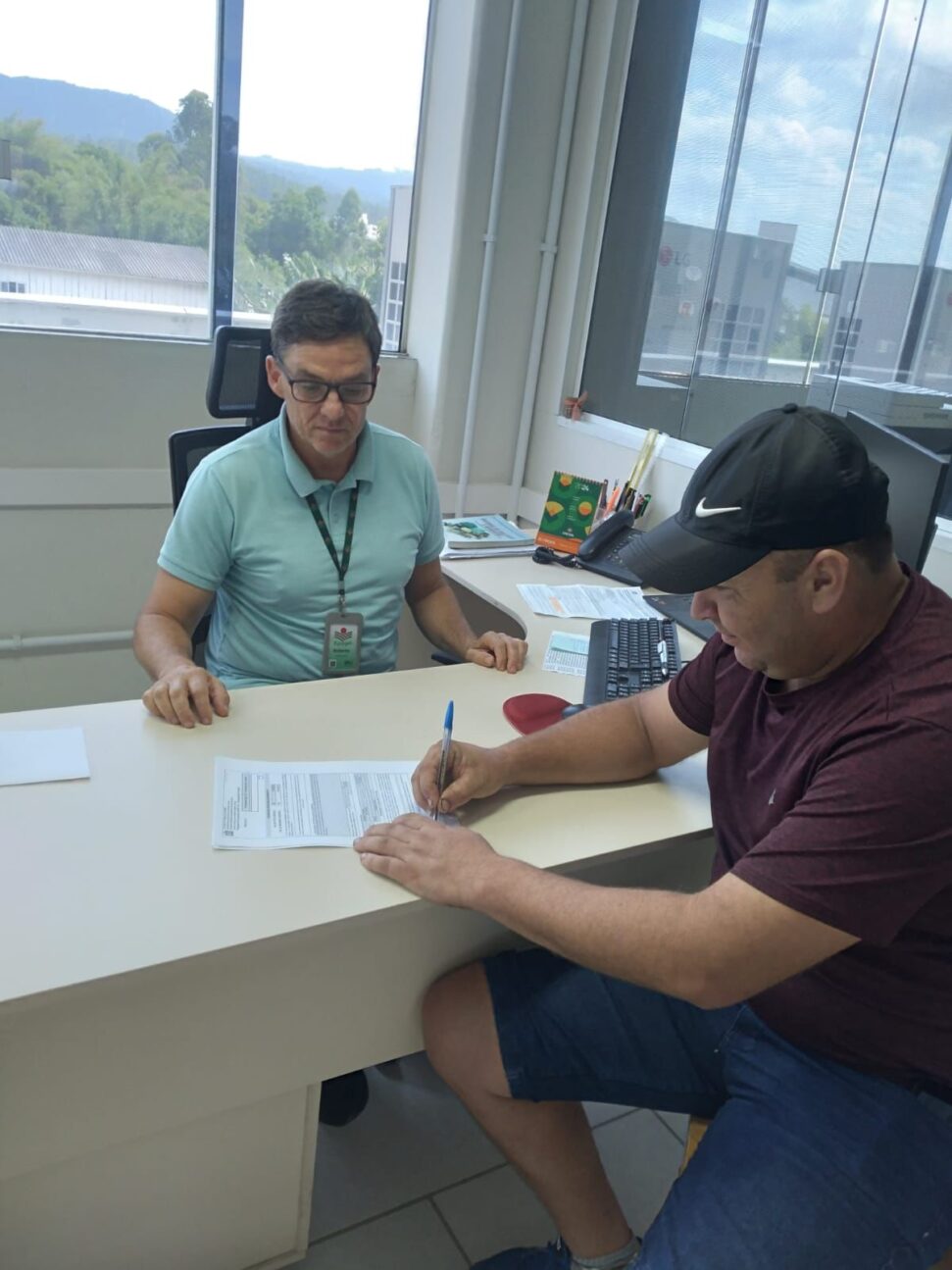 O agricultor Vanderlei Tambosi, da comunidade de Mirador, do município de Presidente Getúlio, foi até o escritório da Epagri nesta segunda-feira (18). Ele juntou a documentação e assinou o projeto pedindo subvenção de juros de financiamento de custeio, por meio do Programa Pronampe Agro Emergencial.