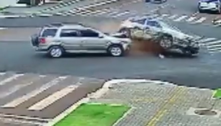 Uma câmera de segurança registrou o momento em que um carro do Google se envolveu em um acidente e na sequência capotou em Medianeira, no oeste do Paraná.